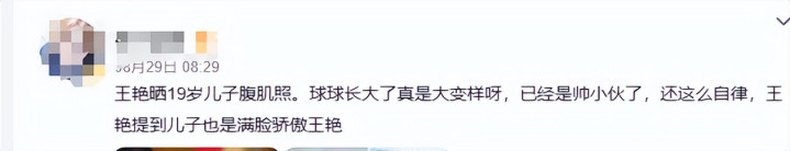 王艳之前还在社交平台晒过球球的腹肌照,虽然打了马赛克,但那八块腹肌的轮廓还是清晰可见。
